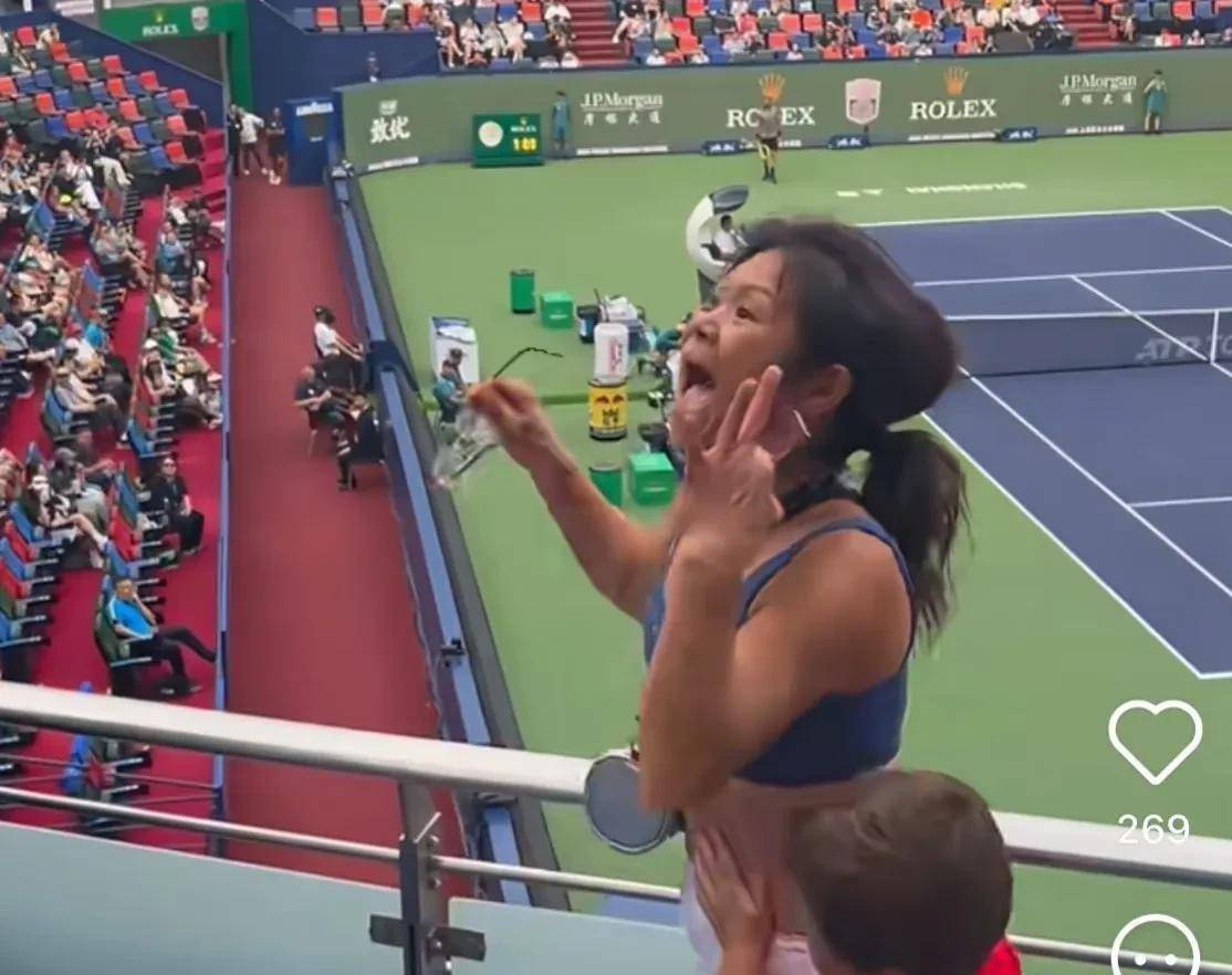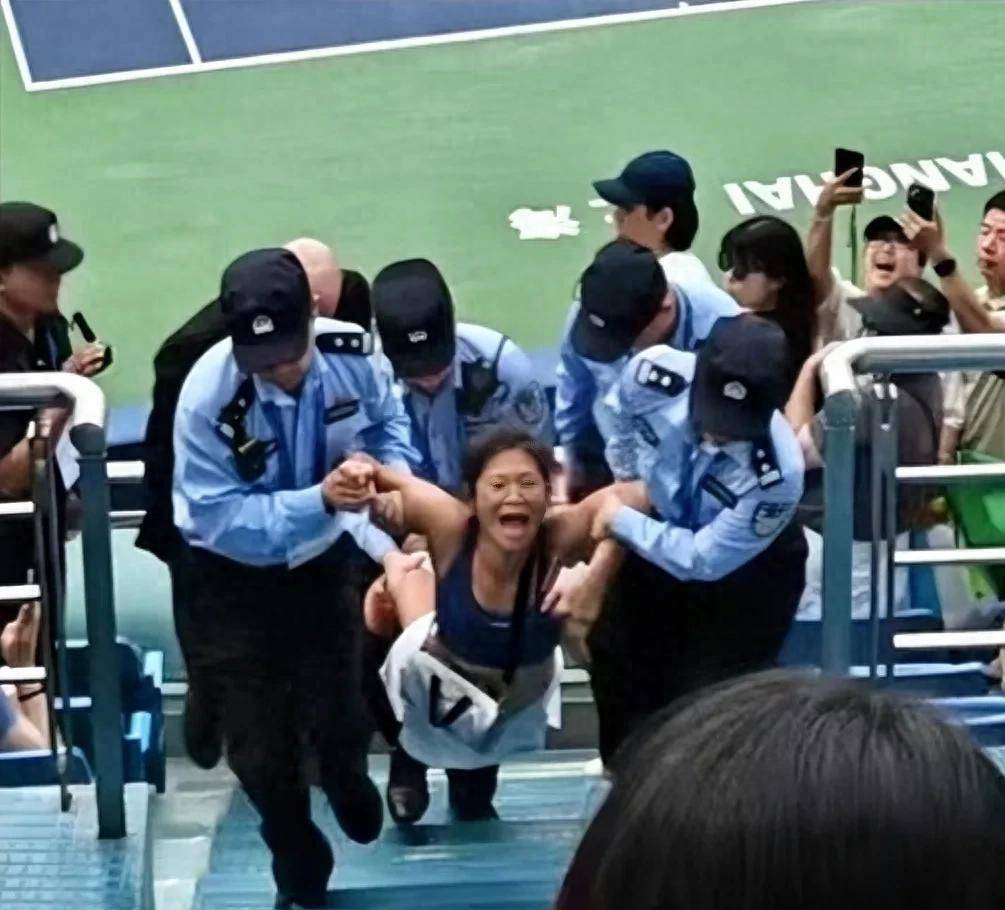 10月1日深夜,上海市公安局闵行分局通过官方微博@警民直通车-闵行发布警情通报。通报确认:10月1日下午,谢某某(女,46岁)酒后在旗忠网球中心观赛期间持续大声喧哗,严重扰乱赛场秩序,导致比赛一度暂停。