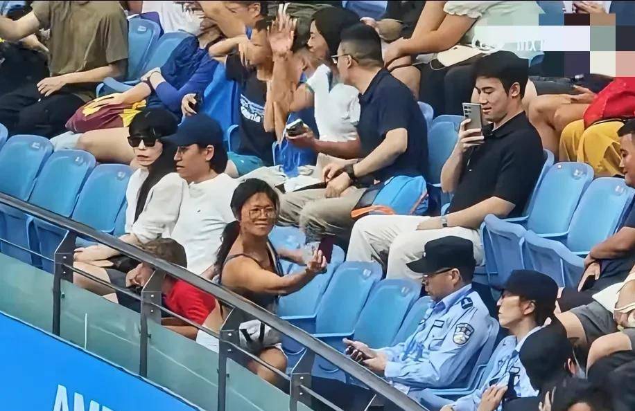一名身着深色背心的中年女子在看台上持续发出怪异叫声,引得周围观众纷纷侧目。现场工作人员立即上前示意她保持安静,但这名女子不仅没有收敛,反而变本加厉地扭动身体,做出各种夸张动作。比赛因此受到干扰,裁判多次看向看台方向。