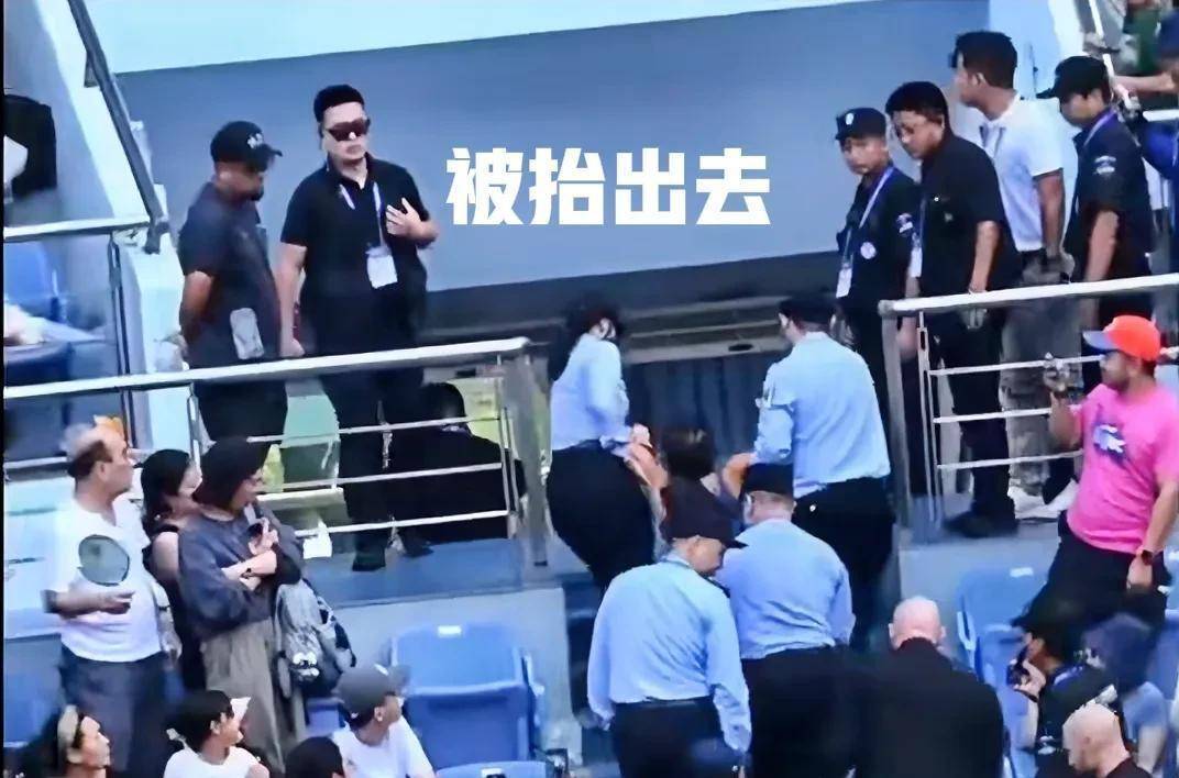 民警在反复警告无果的情况下,决定采取强制措施。首先将女子身旁的小男孩妥善安置,随后多名安保人员上前准备将她带离看台。女子激烈挣扎,嘴里不断叫骂,但最终被工作人员合力抬起,缓缓走向出口。