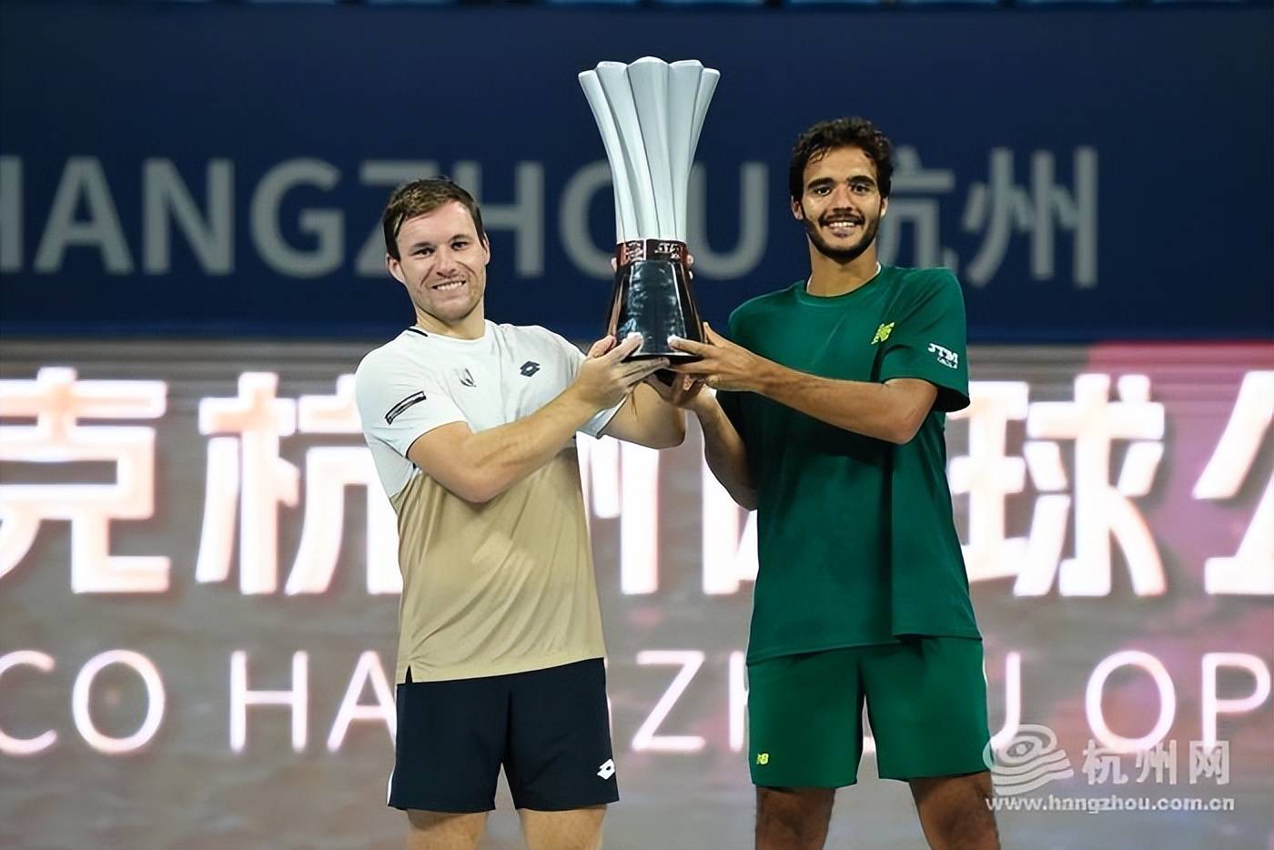 在下午非常早结束的男双决赛中,赛会1号种子弗朗西斯科·卡布拉尔(葡萄牙)/卢卡斯·米德勒(奥地利)2比0(6-4/6-4)战胜尼古拉斯·巴里恩托斯(哥伦比亚)/大卫·佩尔(荷兰)夺得二零二五领克杭州网球公开赛男双冠军。