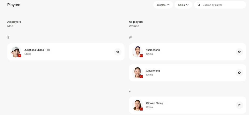 中国选手共有4人入围名单,其中郑钦文和王欣瑜两人,通过排名直接入围。王雅繁和男单的商竣程,都采用保护排名报名参加该站比赛。