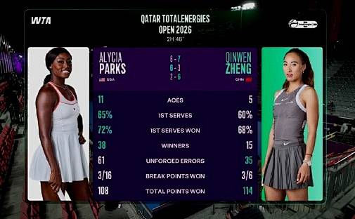 北京时间昨晚,WTA1000多哈站结束了第三个比赛日的较量。在单打次轮一场焦点战中,中国一姐郑钦文鏖战2小时48分钟,以7-6(4) 3-6 6-2击败美国资格赛球员帕克斯,收获伤愈复出的两连胜,顺利挺进16强。